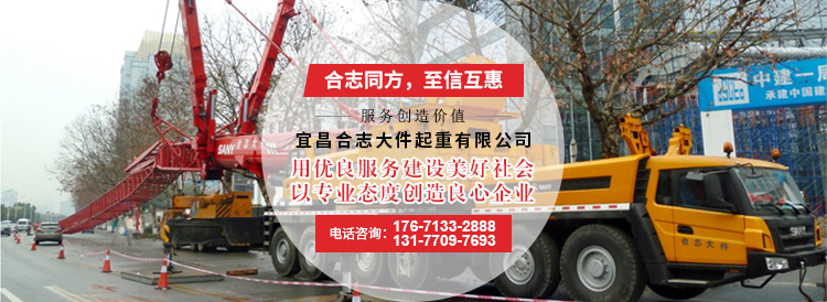 宜昌合志大件起重有限公司陆续增添和更新起重吊装设备,迅速占领了川东鄂西大型设备吊装市场:宜化大型设备安装、葛洲坝船闸维修、三峡大坝电梯安装、兴发大型设备检修、枝江省化大型设备安装、葛洲坝船厂、伍家岗中建之星配套设施吊装,宜昌至喜大桥、秭归郭家坝大桥、宜昌伍家岗大桥和白洋大桥配套设施吊装,宜昌市政快速立交桥、人行立交天桥吊装,荆州南水北调工程,利川风场、大悟风场、随洲风场、南阳社旗风机等检修及安装,武汉甚至湖南、陕西、重庆、贵州、浙江等都留下了我们的足迹,我们争取以我们优良的设备、专业的人员、优质的服务、安全的施工,做到全国最大最优的吊装公司。